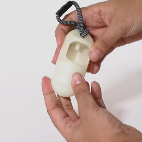 This is not your ordinary dog poop bag dispenser! The Glow-In-The-Dark Poop Bag Dispenser not only allows for easy retrieval of poop bags through a side opening but it is made with glow-in-the-dark material that provides safety when walking at night. It comes with one roll of compostable poop bags (15 sheets) and can be easily attached to any leash. Sliding it on to a classic leash ensures the poop bag dispenser stays in place and doesn't move around during walks.